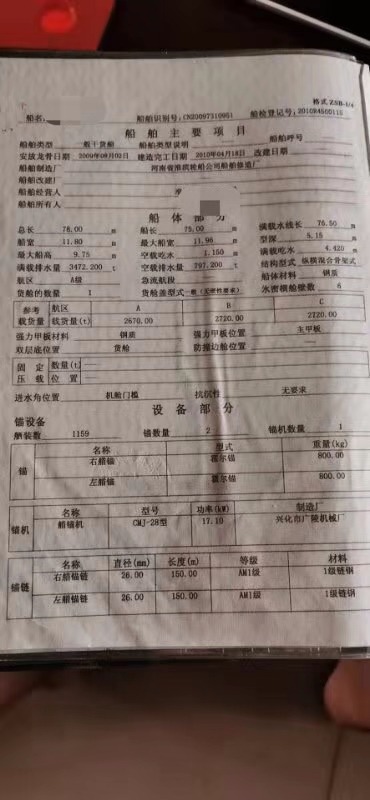 吉船出售:长78 宽11.8深5.15 =3318吨。450*2 淄搏2010年淮滨造 ,9*75下料,仓口49.5米。报价238万