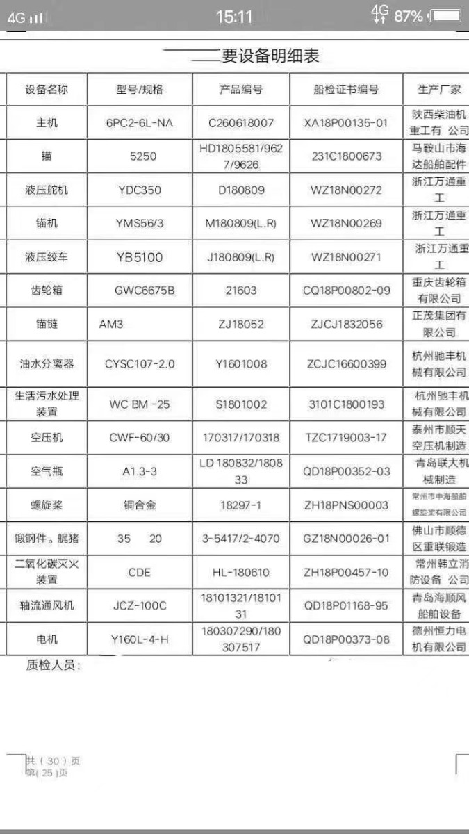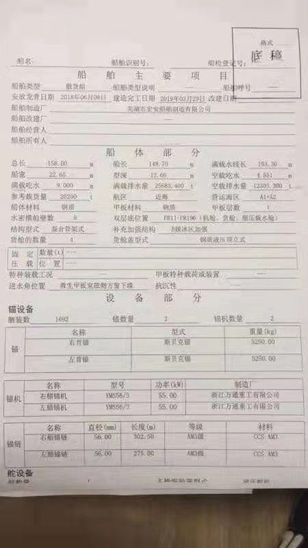 吉船长宽深:153米+22.6米+12.6米; 主机型号:6PC2-6L-NA;