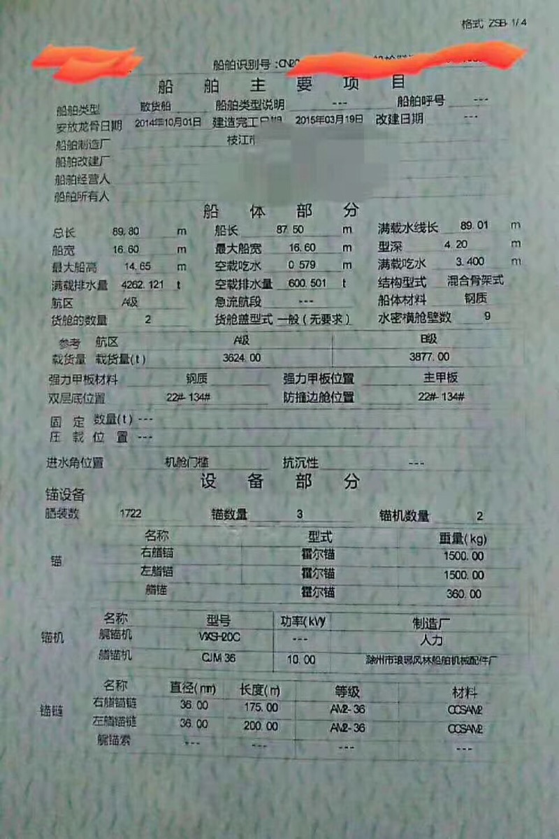 船尺寸(米) : 89.8*16.6*4.2