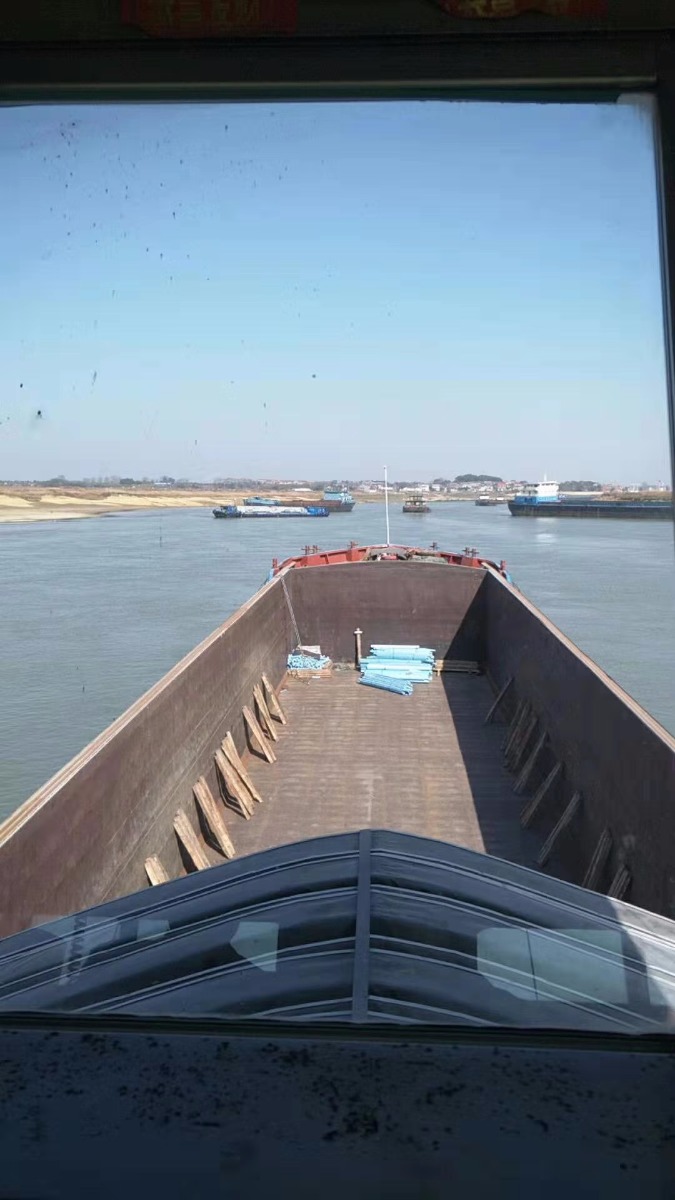 2003.6江西湖口造船长54.35/宽10.3/深3.38/9道龙45(敞口长:37米,宽:8.2米,高:4.2米)两台南通210车,有武汉做的推蓬,船正在上坡打油漆,53万